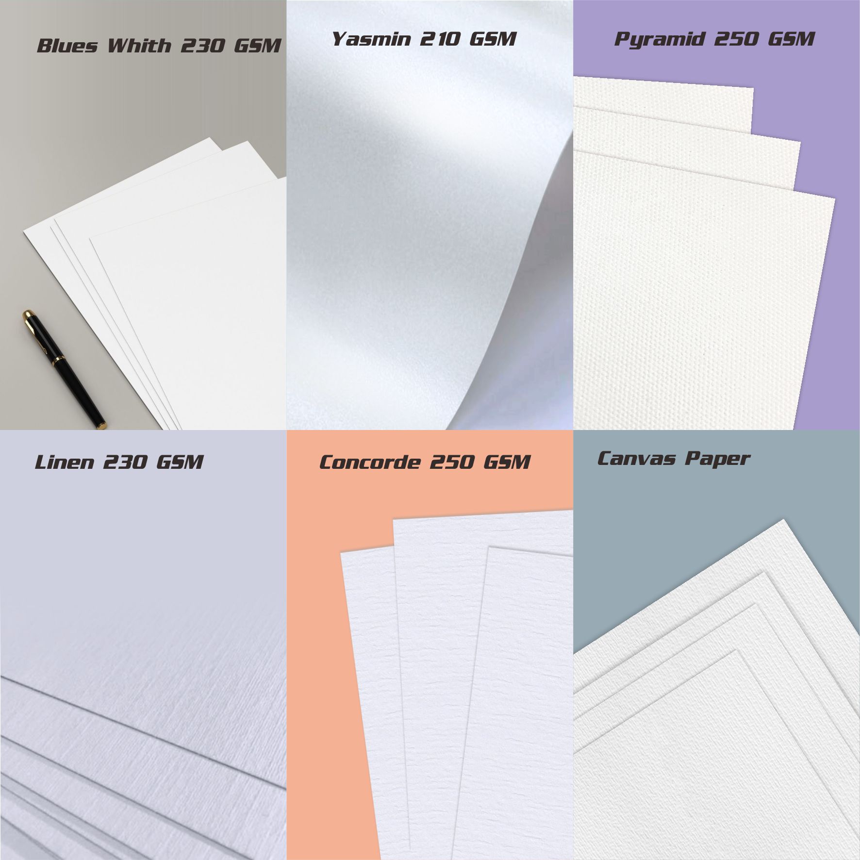 Fancy Paper (Blus White, Linen, Concorde, Jasmine, Pyramid, New Top)